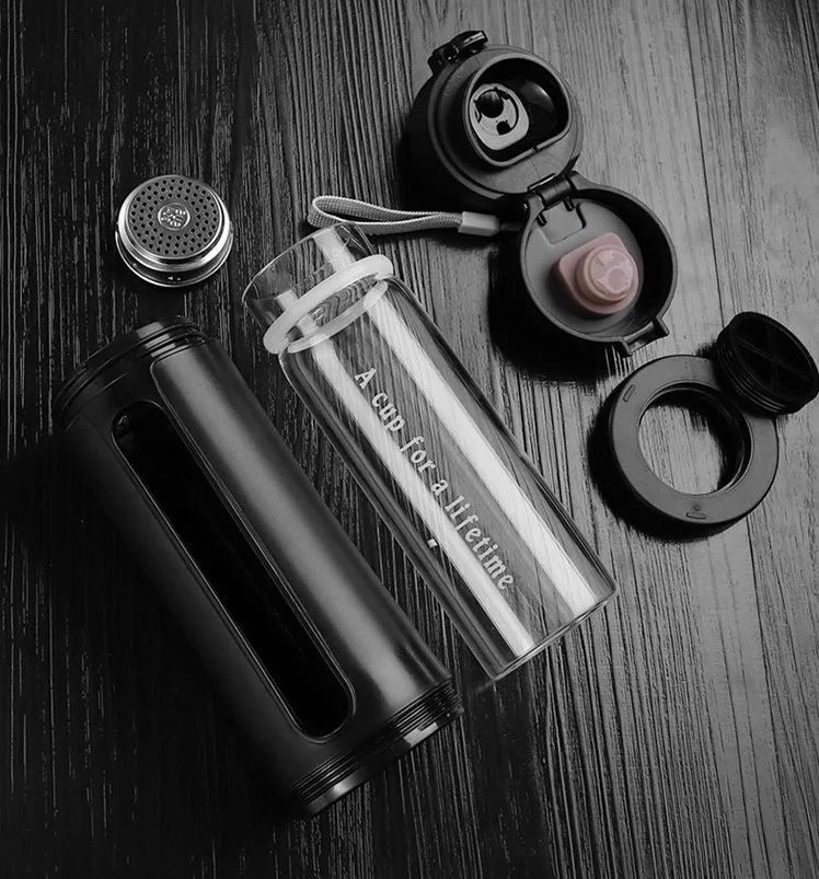 1. Material: High borosilicate glass+304 stainless steel + Tritan outside